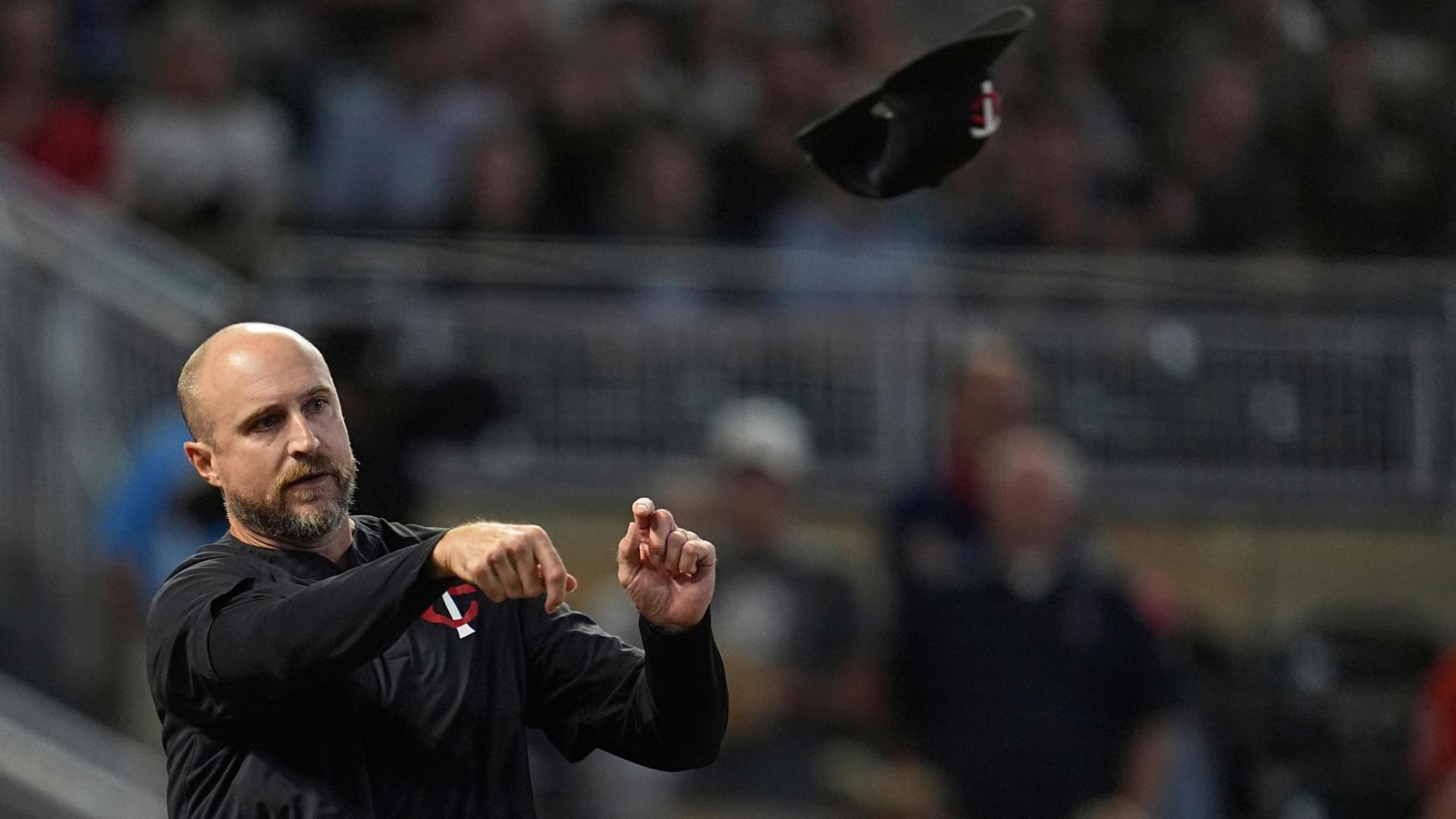 Twins manager Rocco Baldelli flings hat on field after ejection